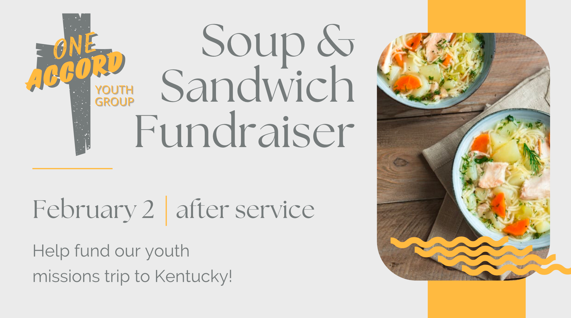 Help the youth fund their week-long missions trip to Kentucky! Stop by after service on February 2nd for warm soups and cold sandwiches! We will be accepting donations at the door.